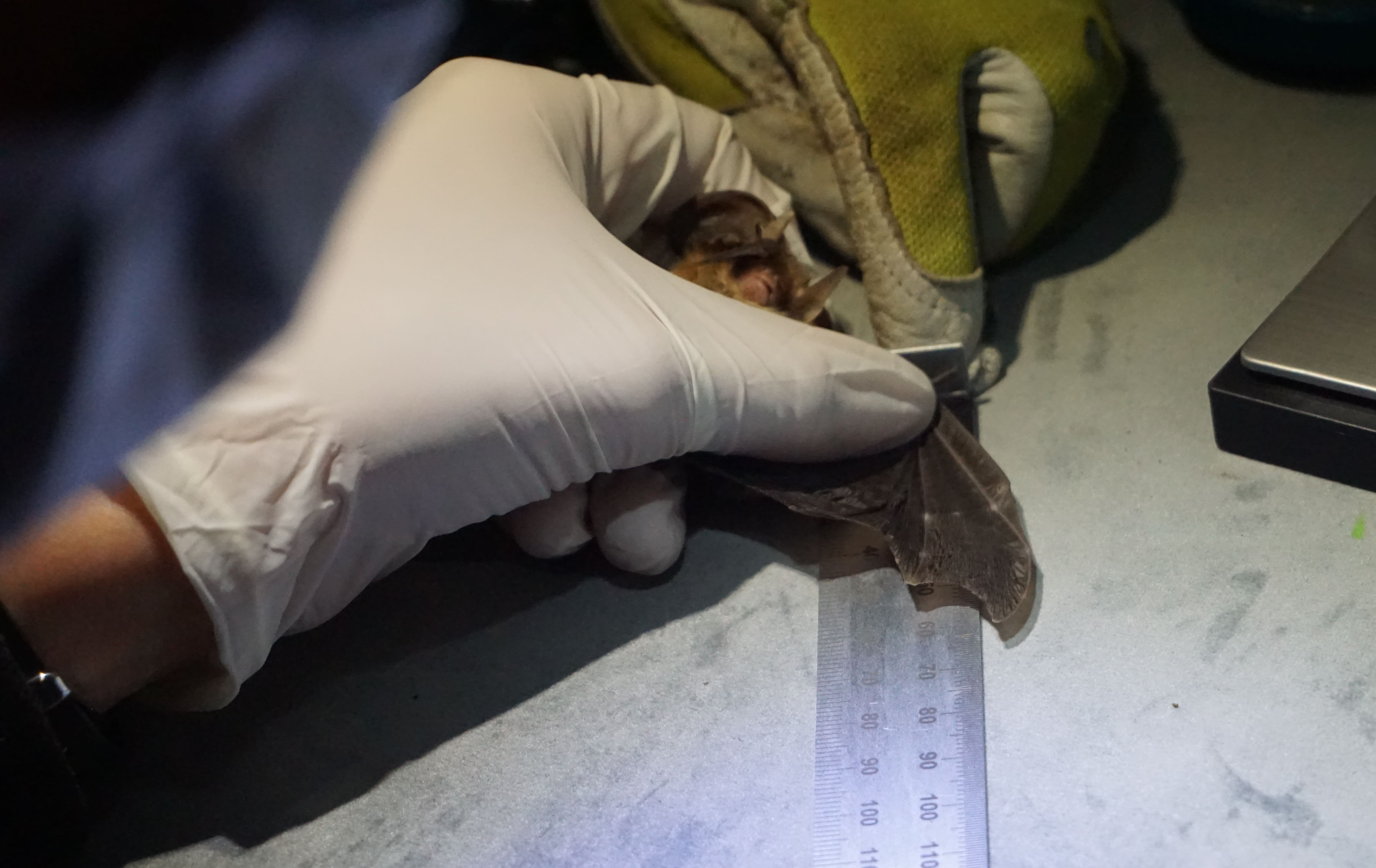 Tous les individus sont étudiés : pesée, mesure du 3e et du 5e doigt, du tibia, observation de l’usure des dents (quant il leur en reste !), du patagium (la peau de leurs ailes), etc.
