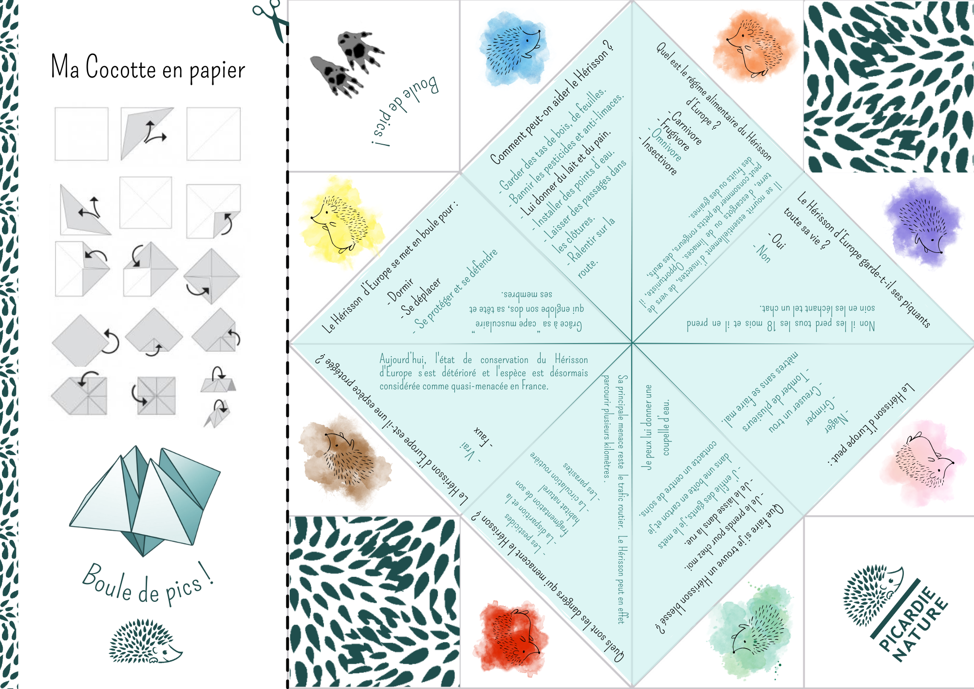 A cette occasion, Picardie Nature a créée un atelier manuel à refaire à la maison : une cocotte en papier sur le Hérisson d’Europe.