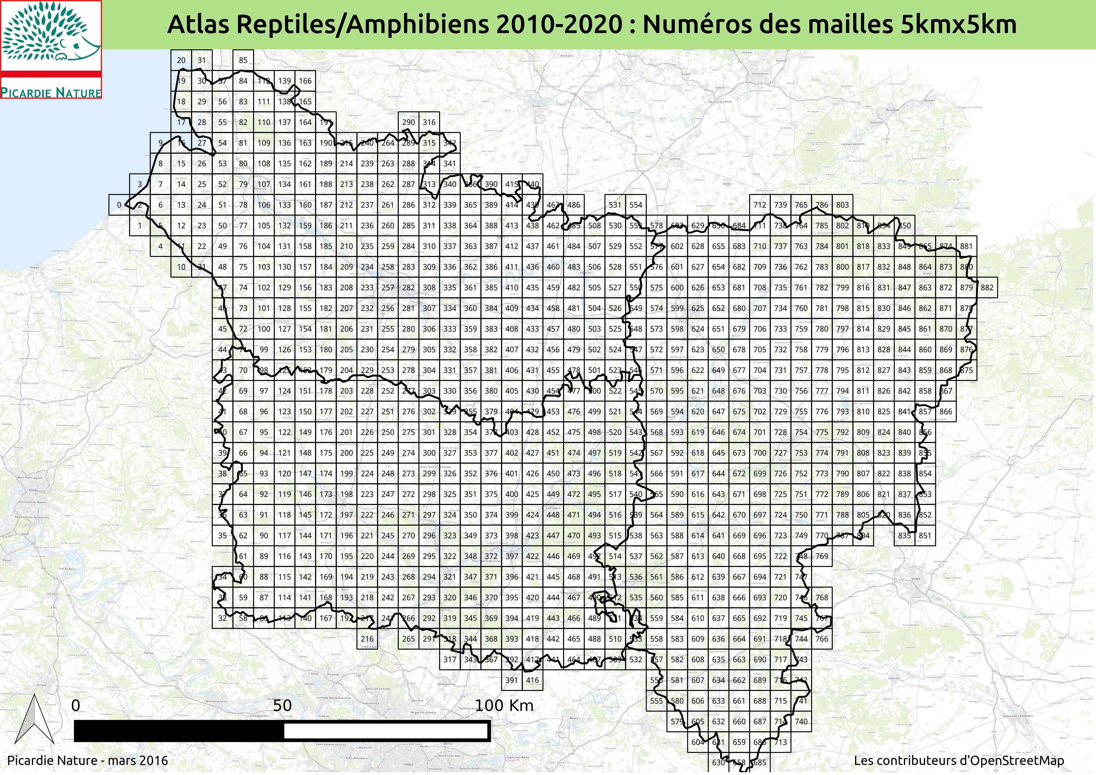 Une fois que vous aurez vos cartes, nous vous invitons à effectuer une recherche des espèces de reptiles ou d’amphibiens déjà recensées au sein de votre (vos) maille(s) en effectuant une recherche par commune ou par espèce ici : http://obs.picardie-nature.org/.