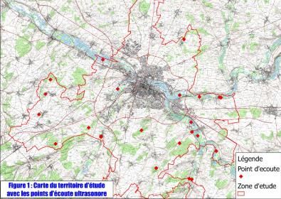 Ainsi la caractérisation de 19 bois et forêts m’a permis de mettre en place 23 points d’écoute sur l’ensemble du territoire. Cela m’a permis, grâce à des points d’écoute de 30 min, de repérer 11 espèces sur les 21 présentes dans notre département. Ce résultat pourrait s’avérer plus élevé de par la difficulté de l’identification du genre Myotis au détecteur. Les 11 espèces rencontrées sont : la Pipistrelle commune, la Pipistrelle de Kuhl, la Pipistrelle de Nathusius, la Sérotine commune, la Noctule commune, la Noctule de Leisler, l’Oreillard gris, l’Oreillard roux, le Murin de Brandt/Beichstein, le Murin de Daubenton et des Murins indéterminés.