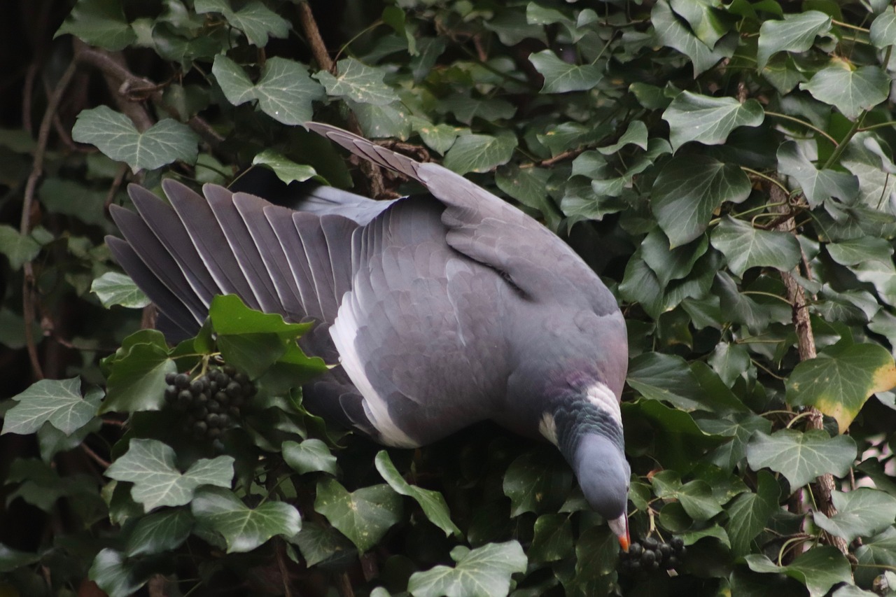 Pigeon ramier mangeant des fruits de lierre - Nennieinszweidrei Pixabay